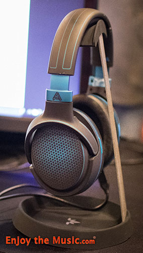 Audeze's Mobius features very good 3D sound and room emulation complete with gyroscopic head tracking for astonishingly pinpoint virtual surround sound. Directional cues during the demo were fantastic and the deep rumble of Audeze's trademark planar bass had me absolutely absorbed in the demo. The Mobius also features Bluetooth or USB connectivity in addition to an analog input, a volume dial and a boom mic, among its many features. I've preordered this one and I'm looking forward to hearing more soon. If you're an audiophile and a gamer, this is a must audition.