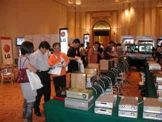 There were a couple of products that caught my attention at the KL International AV Show. No, they were not the sound systems that cost a couple of hundred grand. There was this booth that featured a piece of glass that could turn from being transparent to opaque at the click of a switch. That was cool. The guy manning the booth said you can install the special glass in your office and you can still look out and see what kind of trickery your staff are up to -- sending SMSes, putting on make-up, chit-chatting, etc -- and when you need to make a presentation, you just turn on the switch and convert the transparent glass panel into an opaque screen for your projector. Since you are the boss, you can even watch a movie while your staff continue, er, working.