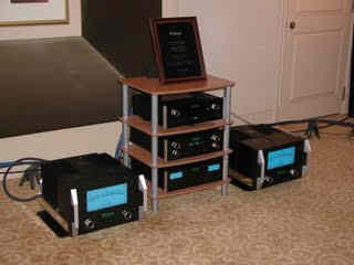 The McIntosh system comprising the MCD500 SACD/CD player, C500 pre and MC1.2 KW monoblocks and the XRT1K tower speakers.