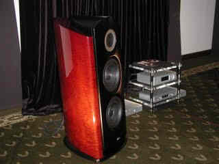 German Physiks Carbon Mk IV speakers with Moon by Simaudio amps and CD player. This system impressed many audiophiles. Seen here is the special driver of the German Physiks speakers