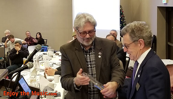 Michael Fremer received a special custom turntable from Charles Kirmuss of KirmussAudio. Happy hat-wearing David Robinson did a truly incredible job photographing the Gala events.
