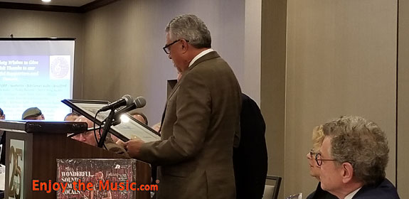 This year marks their very first Arya Award and here's Bob Levi holding this Award for Wayne Shorter Emanon on Blue Note Records. Hosted by Dr. David W. Robinson of Positive Feedback, who is Executive Vice President of the Society and Chairman of the Blue Ribbon panel of judges, this brought more importance to the 25th Annual Gala.