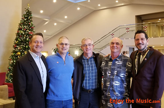 Lined up and ready for the festivities from left to right: Casey Gibson, Thai Plastic and Chemical; Chad Kassem, CEO Acoustic Sounds; Dorin Sauerbier, RTI; Rick Hashimoto, RTI; Steven R. Rochlin, Creative Director of Enjoy the Music.com.