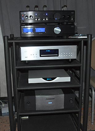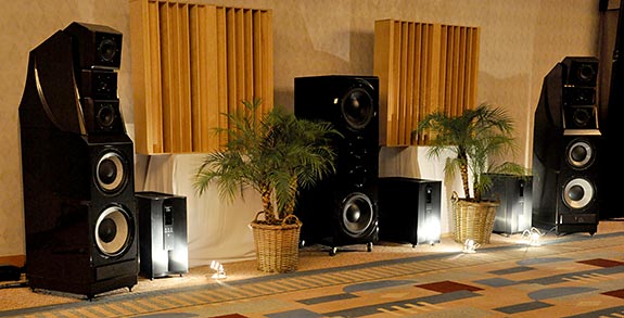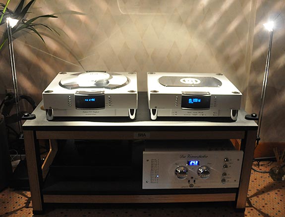 Deciding to hit all the larger suites first, next up on my list was a visit to the Music Lovers Audio room (with store locations in San Francisco and Berkeley California). There I ran into Garth Leerer President of Musical Surroundings of Oakland California. Garth is always helpful and a great guy in fact he sold me my Aesthetic Calypso linestage preamplifier. While there I got to enjoy Wilson Audio's Alexandria XLF loudspeakers ($199,500 per pair) and Wilson's Thor's Hammer Subwoofer ($21,500), driven by VTL Siegfried Series II Reference monoblock amplifiers ($65,000 per pair), VTL TL7.5 Series III Reference line preamplifier ($8500) feed by the dCS Scarlatti digital playback system ($80,000) and the AMG Viella W turntable with 12J2 tonearm ($16,500 with the wood trim $1500 less without) mounted with a Clearaudio Goldfinger Statement cartridge ($15,000).