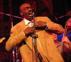 Nappy Brown closed out Friday night with some truly sizzling showmanship. Nappy went out into the audience and got up close and personal with some of the women, begging them to "let me squeeze your lemons, baby!" This guy sure didn't act like he was 74. Nappy flat-out owned Blue Heaven Studios while he was on that stage. He even rolled around on the floor and moaned. To say that he had the audience's attention is an understatement. Nappy, who got royally ripped off by the record companies in the fifties, showed that nearly fifty years later he still has the fire and vocal chops of a world-class performer.