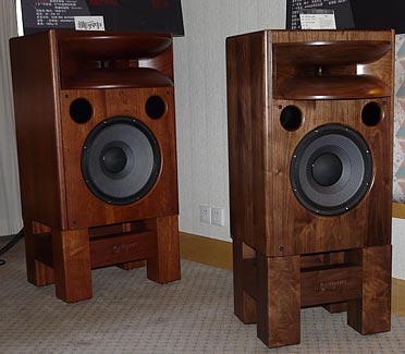 to the right is 98,000 RMB per pair. The woofer reminds me of vintage drivers by various USA companies with multi-folds on the surround and paper cone. A 1.5-inch compression horn covers the upper frequencies.