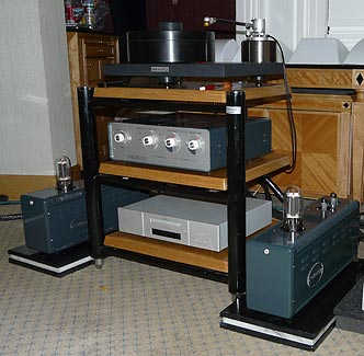 preamplifier in the center of the equipment rack. The turntable is called Musical Life.