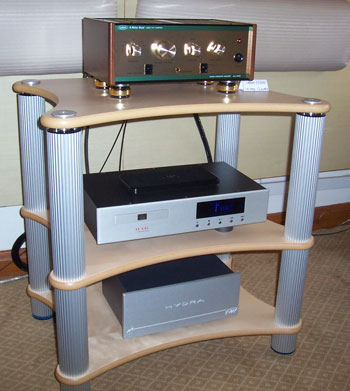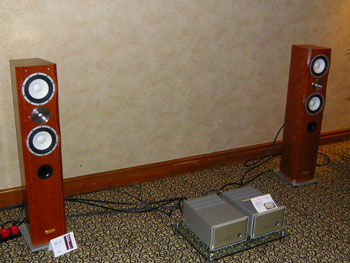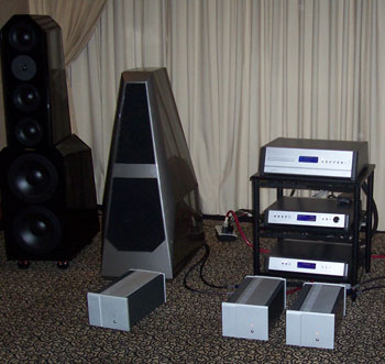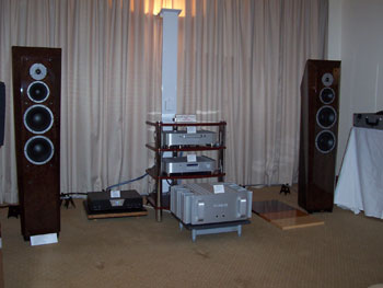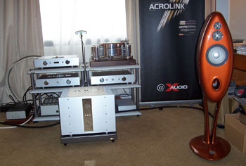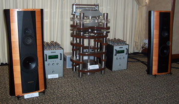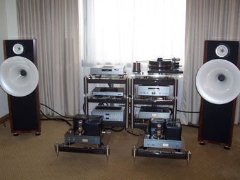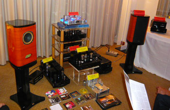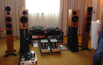 Latest products galore, we had Response ProAc Tri Tower floorstanders and the latest ProAc Response D Two stand mount. Nope, the D Two was not supposed to replace the Response 1SC, and yes, the Tri Tower sounded as sweet as the 1SC, with better lower grunt. Source was Vimak DT-600 CD player, line stage was New Audio Frontiers Absolute and finally the Almarro 6C33CB parallel single ended