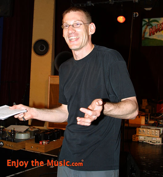 Welcome to the official virtually live coverage of the nyNOISE Audio Design Exhibition festival and show held in New York City at Arlene Grocery (a NYC rock club). The 2002 show was held on Saturday, June 1 in New York City at Arlene Grocery (a rock club). Hosted by JC Morrison and Blackie Pagano, 2002 marks the fourth consecutive year they have both sponsored this event so others may bask in the glory of DIY audio. For those of you who missed our previous show reports, please click the appropriate date to see that year's coverage (1999, 2000, and 2001). The nyNOISE event is the place for true audio artisans to share in their designs and delights. No posers, false bought n' sold hypemeisters or deadbeats allowed here!