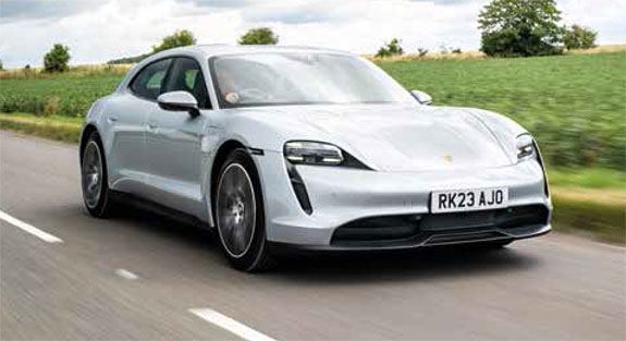 Porsche Taycan Turbo S Sport Tourismo with Burmester sound system.
