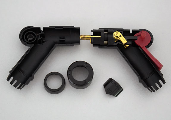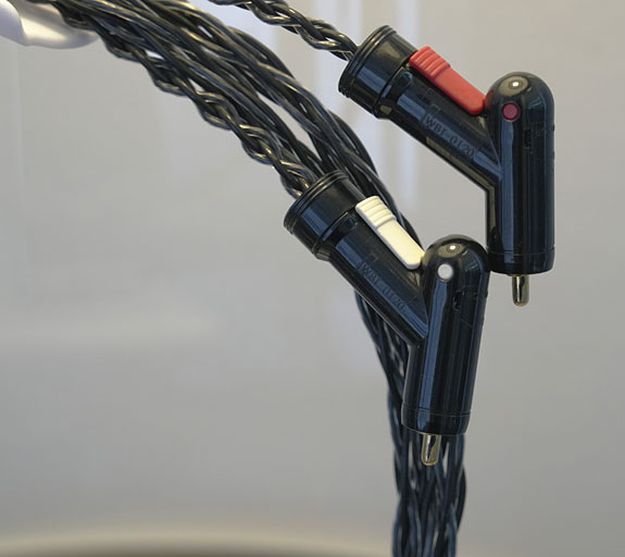 The WBT 0120 Cu (€53 each) is a Next-Gen plug with a plasma gold-plated surface on a center pin that is moved into the optimum position with a lever at the back of the plug. The negative contact is achieved with the minimum of metal for maximum sound quality.
