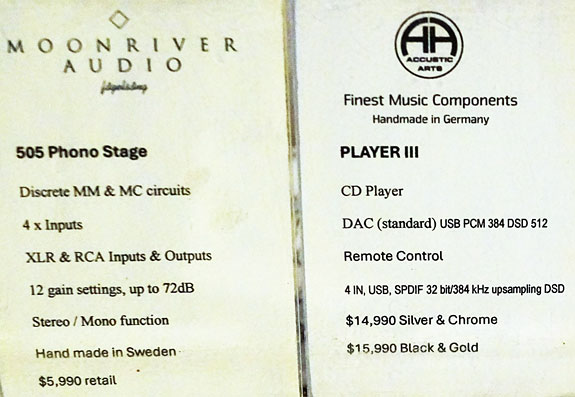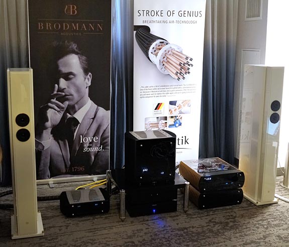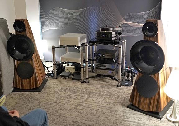 Once again, the streaming gear on this HiFiStay rack was in action during my visit. The cabling was by Cardas Clear and Clear Beyond. Driven by 8-Watt Manley 300B monoblocks, the Albedo speakers were obviously very efficient. They also begged for a larger room. I covered this line in more detail at Capital Audiofest, and I recall they also have a more modest and conventional floorstander in their lineup.