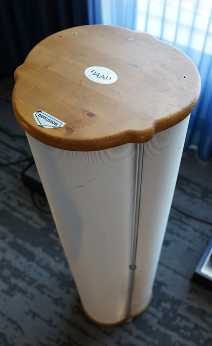 On the floor between the speakers was this DaaD, Diffusion Absorption Acoustic Devices column from Acoustica Applicata in Italy, a company specializing in such things for over 30 years.