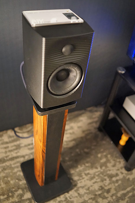 Was this a FiiO monitor with horizontal stripes and a sculpted waveguide for the tweeter? The stand was certainly handsome, too.