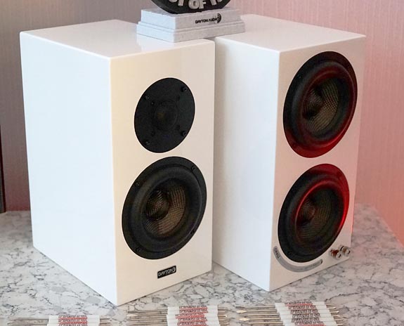 The Dayton Audio Opal 1 loudspeakers took honors from Audioholics last year. It's available in gloss black, too. Notice the right speaker is showing the back side with a pair of passive radiators, allowing the speaker to dig down into the low 30Hz range. It is a nominal 8 Ohms with a low of 4.3 Ohms, a very low sensitivity of 78.5dB/W/m, and only $800 on eBay. Yikes! Yikes! Notice the carefully arranged audio screwdrivers with a flat blade on one end and a small Phillips head on the other. These were a giveaway, and I must confess one has found its way into my audio toolkit. Thank you, gentlemen.