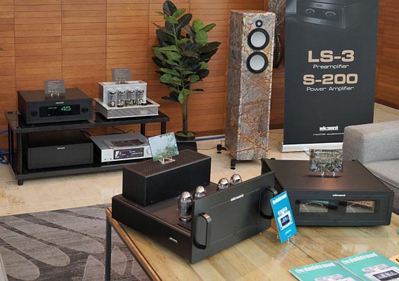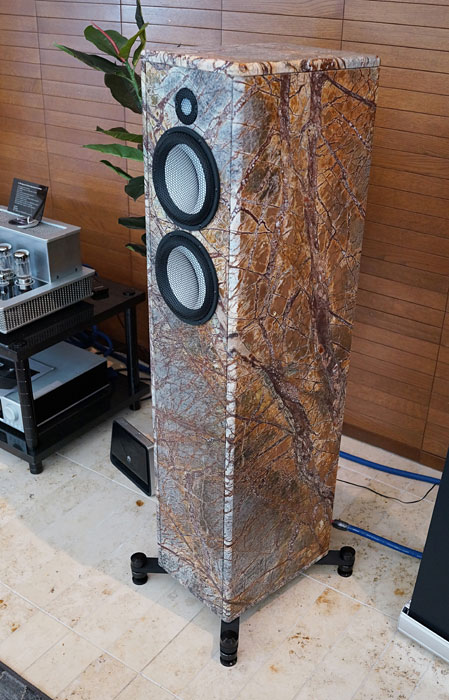 The MRC-2 is a 2.5-way speaker at $12,990, base price. The Forest Brown marble is an upgraded finish, adding $3500 to the cost of MRC series speakers, turning it into an intricate work of art that will enhance even the most expensive homes. It filled the large room with ease, belying its modest size and small footprint, though, to be fair, this space had a ceiling above it, unlike the previous system open to the Atrium. It sounded great with the front baffle of the speaker placed only a couple of feet into the room. With Accuton ceramic drivers, 4 Ohm impedance, and 92dB/W/m sensitivity, it will play loud without distortion with little power. In this series, there is one larger and one smaller floorstander, a center channel, and a stand-mounted monitor, which I saw later in the day. At this quality level, I'd say it has huge value. Reviews should be trickling out before the end of the year. Hopefully, the tariff insanity will not affect the prices.