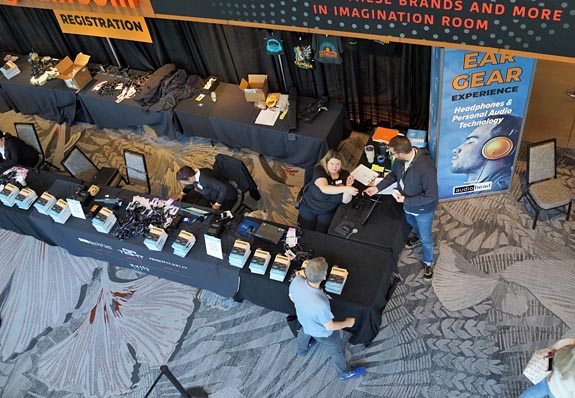 From the hotel end of the Renaissance to the conference center, an elevated walkway crosses above the registration desk and the entrances to the Schaumburg Ballroom, which was divided into East for the audio conferences, and West for the Ear Gear Experience. I'll get to that in Part 11. Exiting the walkway from the hotel on the 2nd Floor, I turned to the left to begin my tour of the largest rooms at the show.