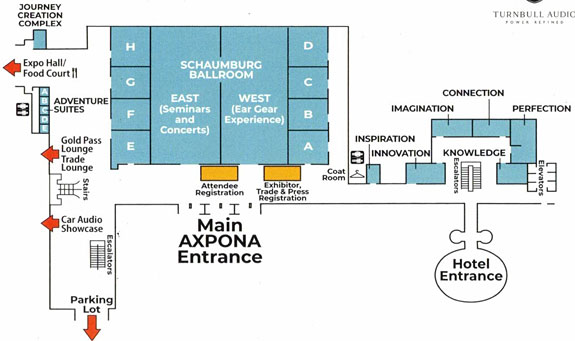 Everybody enters on the 1st Floor here at the AXPONA 2025 high-end audio / audiophile show (and for this report). That's where we all register, including the press and exhibitors. That's where you can take the escalator up to the front desk of the hotel, or the elevators up to the 16th Floor. I cover shows from the top down to keep my photos and notes in order. This also means by the time I write about the 1st Floor, everybody else's coverage is old news, and the show in Munich is also history. My coverage isn't news or journalism so much as it is documentary.