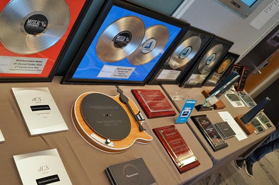 By the entrance to the Connection Room, a table was filled with industry awards given to Quintessence Audio by its various suppliers. Obviously, they are a very highly valued dealer.