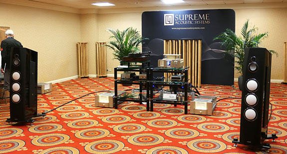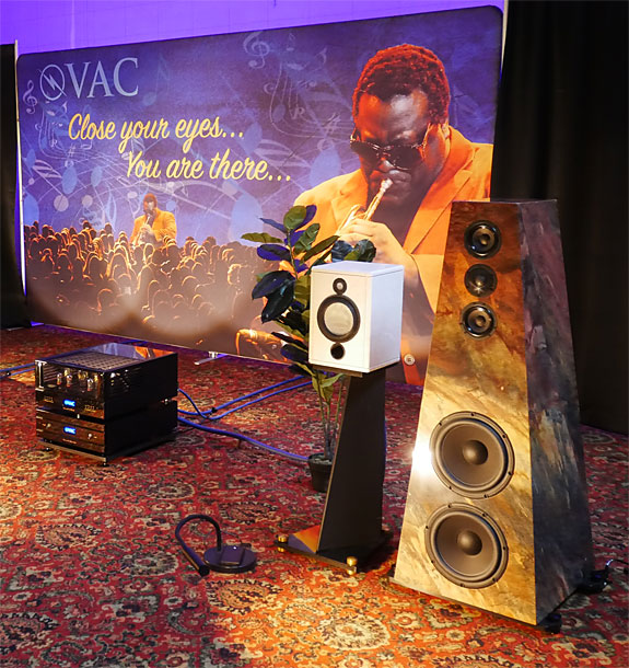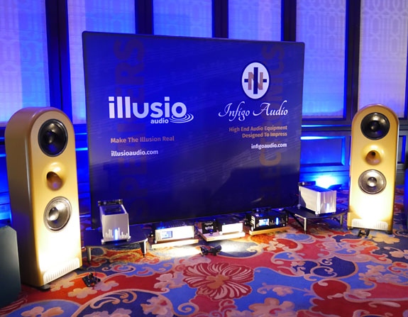 The sound had a broad center stage. As I moved around this room and despite the prominent slap echo, the speakers produced a good stereo effect in many parts of the room. Infigo Audio's electronics used in this room were the IS-1 Quad Core streamer ($6,250), Audio Method 4 DAC ($43,750), Audio Method 3 Mono Block Amp ($68,750/pair), Sonofinity model 2019 Subwoofers ($28,000).