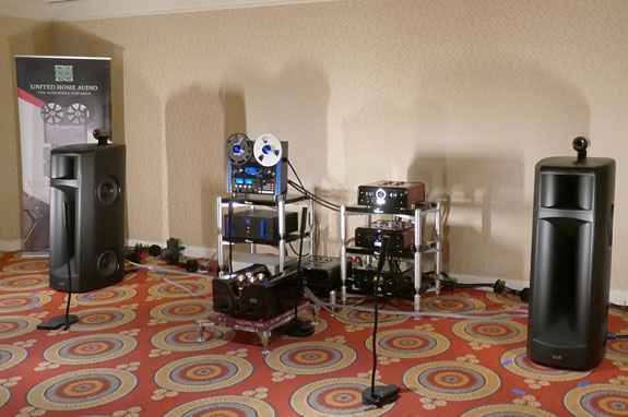 So how did it sound? I was unable to make a meaningful evaluation since the tape playing was full of electronica — nothing I could use to make a good evaluation. But I will say it filled the room well and sounded great for that sort of music. I'm sure Vivaldi would sound good on it too, but it was futile to wait for that to come on the tape playlist.