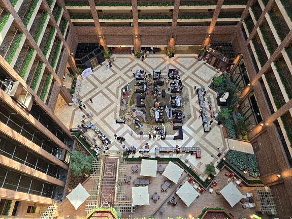 A shot of the Atrium at the enormous Hilton Anatole hotel playing host to the weekend's second Southwest Audio Fest.