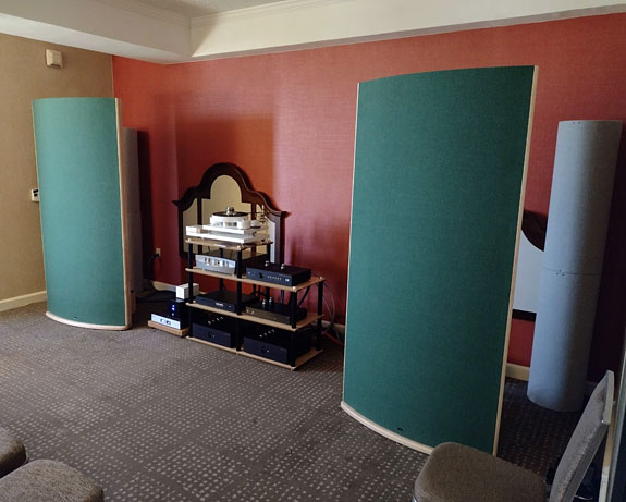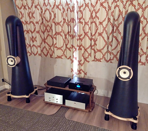 The Charney Audio room featured these Lumica rear-loaded horns that immediately won over my heart.