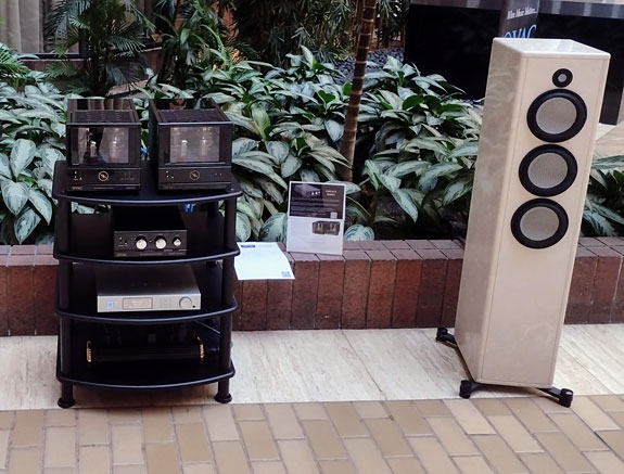 This little VAC system outside the main ballroom caught my eye. It has VAC Essence electronics, Acroa Acoustics MRC-3 loudspeakers, Aurrender A1000 streamer, and Cardas Audio cabling.