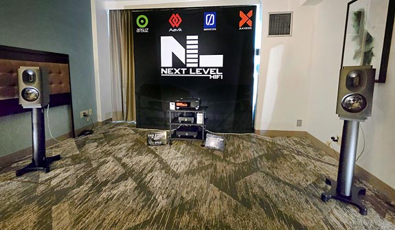 As indicated, this was my first visit to this annual show. And though it was being held at a new venue for the first time, I've attended other well-established shows that did not have this level of organization, as comfortable and inviting an overall vibe, or had proceeded or been run as smoothly and efficiently. A hearty well done to Bart Andeer, Sue Toscano, and all the other staff who made this event possible and so enjoyable. Over its three days, with something on the order of sixty exhibitor rooms and twenty vendor booths, across four floors, it was just the right size to be possible to experience everything one cared to see and hear. This variety of exhibits and gear presented here spanned the entire gamut, ranging from an over two million dollar system, highlighting the statement six-panel, $785,000 a pair Clarisys Audio Atrium loudspeakers, driven with four of the Valve Amplification Company's latest flagship amplifiers that were making their world premiere at this show, the two chassis Statement 455iQ's, to the stir and excitement generated by a $1000 pair of monitor loudspeakers designed by a 17-year-old teenager. Let's start with a rundown of some of the more engaging rooms I found at this event.