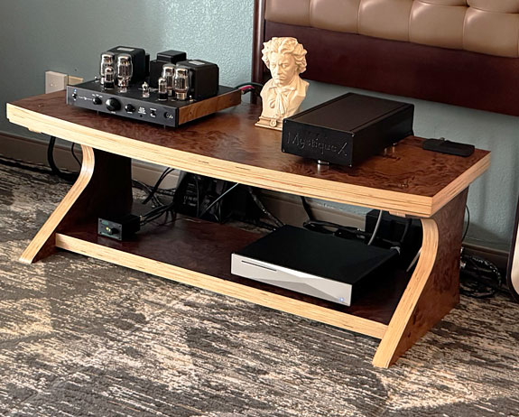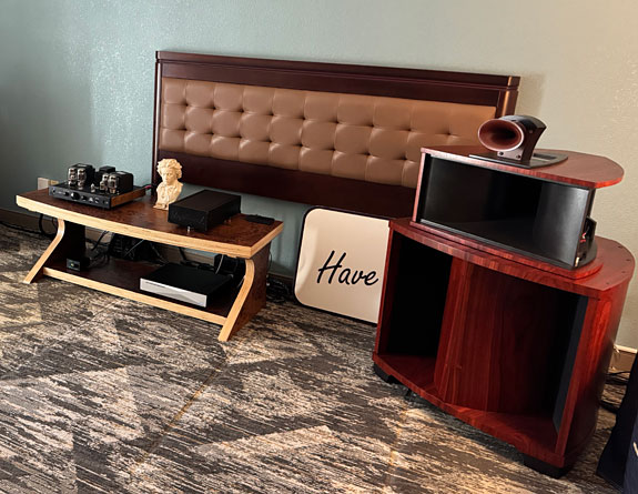For those seeking more efficient loudspeakers and immense SPL dynamic swings, Volti hornspeakers provide a truly excellent performance from this high-sensitivity (104dB/W/m) folded horn design. These high-end, and handsome, hornspeakers were being driven by a very modest Cary Audio 40-Watt stereo vacuum tube integrated amplifier ($4,995). To my ears, the realism is second to none.