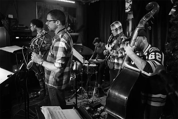 Saturday night featured the Frank-Irwin Quintet, which plays a wonderfully fresh take on Jazz led by composer / bassist Chris Frank. The Frank-Irwin Quintet is known for their evocative melodies, smooth harmonies, and deep grooves. Founded in 2018 by bassist, producer, and composer Chris Frank, his Quintet strives to bring positivity and levity into the lives of its audience members, armed with a dark sense of humor and uplifting sound. FIQ's two albums and two EPs includes moe than 20 songs plus Frank's arrangements of songs from Fiddler on the Roof, Cabaret, Rocky Horror Picture Show, and various popular tunes. Their latest album, New Commute, earned a review within The Best Jazz on Bandcamp, June 2022. Frank's unique and innovative style is said to be inspired by Charles Mingus, as each tune features non-conventional song structures and open compositions. Both concerts are free with a PAF 2024 show ticket.