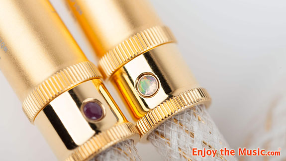 So how is all of this implemented? When you take the Naked interconnects out of the box, you will quickly realize that they are unlike any other interconnects you have ever possessed. Your first question might be, "Where's the wire?". They are so light the impression is you are handing some cotton tubing. Then you notice them. The six golden threads spiral gracefully around the inner core of white cotton. These wires are only 24 AWG! That's 2/100ths of an inch in diameter. These wires are then covered with an open weave of cotton to prevent shorting, but still, show off those beautiful golden conductors. Our fearless leader Steven is a big watch aficionado and I know he would appreciate the fine craftsmanship of these interconnects.