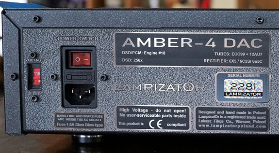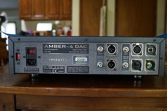 Almost all of his products are made to order. I found that his willingness to customize his products for his customers made his product line a bit confusing. Obviously, with models with exposed vacuum tubes, tube rolling can change the look, but it can go far beyond that. LampizatOr's Amber 4 DAC, for example, can be ordered as a basic single-ended DAC starting at $3750. You can add a remote volume feature bringing it up to $5300. Or you can get a basic balanced DAC for $4250. Beyond that, you can make it balanced with a remote for $6360, which is what I requested for review. With four different digital inputs, and a single-ended analog input it becomes a versatile preamp. With a tuner and a phono stage at my front ends, I'd be short one set of analog inputs, but more on this later.