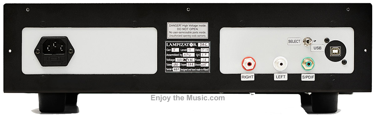 I had been hearing about wondrous DACs from Polish manufacturer LampizatOr for quite a while, but had not had a chance to listen to any of them. But last spring when I spent some time at the AXPONA show near Chicago, I made a point of visiting a couple of rooms featuring them. My review of the LampizatOr Generation 5 Level 4 DAC shows how much more enjoyment you can get from your music with the right setup. Often in the past I have found that it is hard to isolate the contribution of a given component to an unfamiliar system in an unfamiliar – and often sonically compromised – hotel room. But this time the sound coming through those digital sources was so superb, and so much more musical than even good hi-rez setups heard at previous shows, that I wanted to learn more. I spoke to Fred Ainsley of LampizatOr North America, and we arranged for me to do the first review of the soon-to-be-released Generation 5 LampizatOr Level 4, the entry-level DAC offered in North America. At the show I had heard both a Level 4 and a top-of-the-line Level 7 DAC. The Level 7 was beautiful-sounding, but it is a two-chassis product with a five-figure price. My audio setup simply didn't have room for two new chassis, and even if I fell in love with the Level 7 my exchequer couldn’t accommodate the price. The Level 4 has a single chassis, and while it is not inexpensive, I could stretch my budget enough to acquire it if I had to have it. For several years I have been listening to a ModWright-modified Denon 3910 multi-format player. Though that player is pretty long in the tooth for a digital component, with its tube output stage it has had a richness and musical "rightness" that have made it beat out competition from a number of standalone solid-state DACs. A couple of years ago I replaced its original Tung-Sol NOS 5687s with 6900s. Originally developed for military use by Bendix and later manufactured by Mu, the 6900s are superior in every way: detail resolution, full harmonics, and extended frequency response with especially powerful and well defined bass. With those tubes the ModWright/Denon has delivered performance closer to – though still not equal to – my analog rig. After that experience I asked that my Generation 5 review DAC be designed for the 6900s. My plan was to use the ModWright/Denon as the