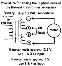 A voltmeter test should now be carried out. A low-Ohms or "continuity" setting should be selected. Use the probes to try all combinations of an outlet: line to neutral, line to ground, and neutral to ground. There should be no continuous low-impedance reading or continuous "bee-eep". If there is, start at the last outlet and disconnect its wires and retest. Do this until you find and correct the problem. A momentary low-impedance reading or short "beep" may be noticed when checking the line and neutral. The key word is "momentary." As the 4 uF cap charges up, the beep or the low-impedance reading will go away. This is normal and is to be expected. It's also a good way to tell if you remembered to put in a fuse. Next, check for continuity between all the tall slots (neutral) of all the outlets. Do the same for "line" and ground. Install and enjoy.
