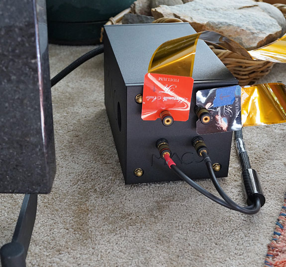 Which Amplifier Worked Best? Plus A Bit Of Fine-Tuning The MACARIA is very much like a thoroughbred horse in that it is sensitive to every change and tweak. Open baffle speakers are often that way. Being a di-pole design with music bounding off the front wall behind them they have a transparency that only comes to box speakers at a much higher price. The music comes out into the room to fill the space between you and the speakers, rather than jumping out from behind the plane of the speakers. They are predisposed to give you that "You are there" experience. The Synergistic Research Vibratron is an expensive tweak that achieves that feat with box speakers but I was surprised to discover it made very little difference with the open-baffle MACARIA. (It wasn't available to me when I reviewed most of the other open baffle designs.) Another variable that I hinted at was the use of copper cables. The MACARIA are equipped with a VIABLUE harness with silver-plated copper between the crossover and the drivers. Most of my rig is strung with silver cabling from Synergistic Research. My tuner has a captive copper power cord from Audio Sensibility and I tried the copper flagship power cord from Audio Sensibility on my DAC. In both cases, the use of copper cords brought the sonic signature more in line with my preferences. Perhaps adding copper interconnects would have contributed even more. Again, fine-tuning can make a considerable difference.