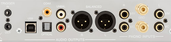 The MP100's back panel is very neatly laid out; you will find a left, right, and ground input for moving magnet cartridges, and a separate input for moving coil cartridges. There's a pair of balanced XLR outputs along with a set of unbalanced analog RCA jacks as well. You have more than enough room for even the thickest interconnects. The MP100 is also capable of converting your records into digital files that can be sent to a network amplifier or even an active loudspeaker with digital inputs. There are optical and coaxial outputs, as well as a USB Type-B output for archiving vinyl records onto your computer's hard drive if that's something that appeals to you. The digital output is limited to 24-bit/96kHz for any DAC, network amplifier, or active loudspeakers (with digital inputs). There is no support for DSD or the proprietary lossy compressed MQA format.