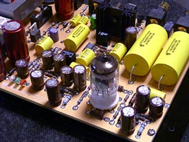 The Paradisea's Tube Buffer The Paradisea can take various equivalents like the 2C51, Western Electric 396A, 6N3Pi (6H3pi), or the 6CC42. The great part, the most expensive of these tubes is the Western Electric. At last check on eBay, the WE396 was selling for under $20 bucks. The vast majority of these tubes will run you between $4 and $6. That means you can pick up scads of different flavor tubes and still have plenty of money left over for pizza and beers. Jiun-Hsien Wu has added a separate transformer and Pi filter to handle the load and regulation of the tubed buffer stage. Mhdt Labs has chosen to run the tube at a very low voltage. Jiun-Hsien Wu picked 19 Volts as the B+ operating point for the tube buffer. This does a couple of things. First it extends (dramatically) the life of your tube. Second, it makes the design and size of the DAC much more manageable since you don't need a big honkin' transformer and high voltage caps for the Pi filters power supply. Just a quick word about the buffer stage for those not familiar. A pair of nice sounding opamps, the Burr Brown OPA2604's, handles the gain stage on the downstream side of the internal Philips 1545 DAC. Just downstream of the output opamps resides the 5670 vacuum tube. This tube adds a nominal amount of gain to the output stage. The tube acts as a buffer, which gives the DAC the tube qualities that many of us have come to know and love. In other words, the design of the Paradisea is not a true tubed gain stage, it is merely a tube buffered output with the critical gain stage being handled by a pair of quality opamps.