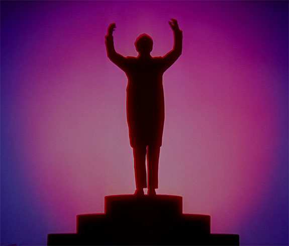 In the 1940 Disney film, Fantasia, Mickey Mouse, still in costume from his performance as Dukas' The Sorcerer's Apprentice, runs up to Conductor, Leopold Stokowski, and, full of admiration, pulls on Stokowski's coat, says "Mr. Stokowski! Mr. Stokowski!", whistles to get the great man's attention, says "My congratulations, sir!" and the exchange continues: