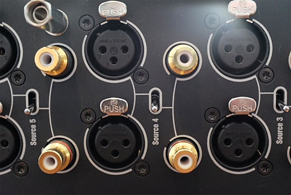 Turning the Makua around, you are presented with five input banks, two outputs, and a set of trigger outputs. Each input bank consists of a single-ended and balanced input, and are switchable via a hard switch on the back of the unit. Even though there is a manual toggle on the back of the unit for each input bank to manually allow you to switch between balanced and single-ended, you can also use the app to switch between the two inputs in each bank. However, according to Mola Mola's documentation there is a greater risk of cross talk if you do this. What this means is that you actually have up to 10 inputs for the Makua, five single-ended and five balanced.