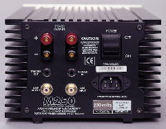 The Musical Fidelity M250 features an unusual additional feature (actually two unusual features and this is just one of them) they call a "trigger mode". It is another way to control on/off function and requires a plugging in to a corresponding socket on the rear panel. This is basically a form of electronic switching the "audio sense" mode. I doubt if many typical users will avail themselves of this feature and I'm not going to attempt to explain it. The other unusual feature is the amplifier's ability to easily be used for bi-amplification. The following four sentences are a direct quote from the amplifier's installation guide, itself a model of clarity. The M250 has a "loop output" socket (rear panel) to allow "bi-amplifying" of a speaker with suitable active or passive crossover networks. This socket is directly linked inside the amplifier to the "line input socket to enable onward connection to a further unit, such as another M250, (of course a different additional amplifier could be used, such as a low powered unit for the tweeters, etcetera). In this arrangement, typically one M250 is used to drive the "tweeter" and one to drive the woofer of each loudspeaker enclosure. Thus, four M250s would be needed for a stereo pair of two or three way loudspeakers.