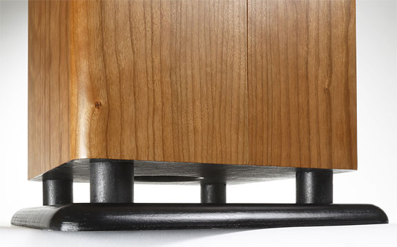 The enormous power demand of the speakers, which could bring even powerful amplifiers at least to the edge of collapsing, was also a topic once. This aspect was tamed and today moves in a completely normal range, which hardly lets a reasonably powerful amplifier flinch with respect. Let's also briefly talk about the optical factor and its design choices: The models here are made in Germany by a carpenter in almost any veneer or finish you want; only the drive unit including the super tweeter are shipped directly from Brooklyn, New York. Cooperating with a carpentry workshop also opens up more possibilities for the German distributor Matthias Ertel, a physicist by profession. Such as responding to special requests in the design of the housing. Almost anything that customers could think of on the subject of looks is thus possible here. The additional costs for this are not completely insignificant, though – but almost modest compared to what many manufacturers charge only for other veneers or lacquers. The workmanship leaves a good impression; it is however up to you to decide whether the cover, which is neatly flush with the edges of the housing, is a feast for the eyes.