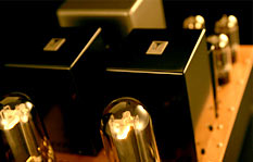 Tube This single triode amplifier displays outstanding low end characteristics when compared with other amplifiers of this type because the OPT core volume is very large. It can successfully reproduce a very soft and warm low-pitched sound. We tend to imagine that we can enhance the tone quality if we were to utilize high permeability core material. But permalloy has a weak point in that it cannot provide enough power in low notes, since it will saturate at a magnetic flux density below the operating point of power amplifiers. In order to reproduce good quality sound, we must carefully select the iron core material, carefully specify the winding method, and choose the material of the transformer wire with optimal sonic results in mind.