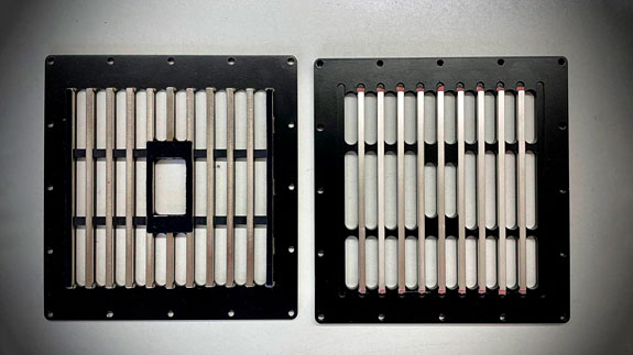 The two 22mm woofers manufactured by Seas according to Piega specifications are supported by two passive membranes of the same size per speaker. This arrangement is more complex and expensive than a bass reflex design, but brings sonic advantages according to the developers. This is why the drivers were adapted from the also still available 711, but have a different operating point now, because the new coaxial driver reaches further down. However, the coaxial ribbon unit responsible for the midrange and treble is undoubtedly the most relevant as well as eponymous component. Resulting from a cooperation with a Swiss university, detailed analyses were carried out and the right conclusions were drawn for a major update. Thus, upon closer examination, nothing remained as it was. The mechanical separation of the magnetic rods was reworked and the front panel was stiffened with a horizontal brace. This enabled the use of a new type of adhesive that softly bonds the magnets, which aims to reduce resonances and further optimize the damping properties of the newly developed and specially coated foil. As we are told, this has the advantage that the frequency response of the driver could be linearized in its lower operating range, while the coupling to the woofer now happens at 470-480 Hertz. As a result, this also reduces distortion, plus it increases the amount of details and resolution in conjunction with an even more natural reproduction of voices.