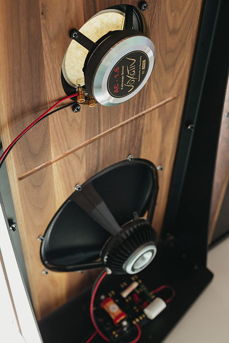 What Is Special About The PureAudioProject Duet 15? The Duet 15 currently under review features the aforementioned 15" woofer along with the extraordinary Voxativ Pife full-range driver (that one might normally expect to see in a single driver horn speaker of the sort prominently displayed on the Voxativ website), connected by a first-order crossover that can be arranged to operate either in parallel or series by the end user.