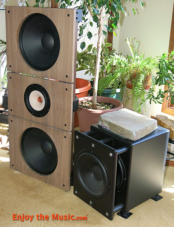 Subterranean Homesick Blues As has happened in the past with other full-range floorstanders, adding the subs (crossed over at 50Hz, the lowest setting) improved the entire musical presentation, adding more vivid tonal color, better focus, improved soundstage and even improved the overall transparency to a slight degree. I have no idea why all this improvement happens since the subwoofers and the Trio are not connected in any physical way except by receiving the same signal through the same amplifier. If I had more time in my life, I might pursue a PhD in psychoacoustics, but that's not about to happen. What did happen was deeper, tighter, more palpable bass. At first it seemed the tonal balance of the combined presentation leaned toward the bass, but after extended listening, equilibrium between the bass and treble was re-established. I've never considered myself a bass-head, and with my reference Kharma speakers delving down into the low 30Hz range I was pretty satisfied with my music without the lowest octave. The subs added that lowest octave, or most of it. Re-visiting Master Tallis's Testament recorded in a Rhode Island church just about converted me to a born-again Christian. The low organ notes were felt in my chest, through the Flexsteel recliner, and even when placing my hands on the wall behind me. I also noted that the open baffle of the sub and the sub's cabinet vibrated, though not as vigorously as the baffles and struts of the Trio. I went back and forth, with and without the subs, several times. The Trio alone is very, very good, and not likely to disturb the neighbors. But with the subs taking the design to full-range status, the Trio is even better. That the Trio alone performs so well for $3500, and with the subs perhaps doubling that cost, acoustically, this is benchmark performance that can put you right in the venue of your music when the room is properly set up. Obviously I've fallen into the rabbit hole of fine tuning in this review, tweaking the sound to my personal preference. With your gear, in your room, the results will probably differ, as may your own preferences. For sure, there are people out there that will love the drier, tighter presentation of the Trio on spikes and that's fine. But the path of discovery I've shared with you here should make it fairly easy for you to successfully set up this speaker with confidence. The beauty of the speaker is that it is so tune-able and can be tweaked to satisfy the needs of a broad spectrum of listeners.