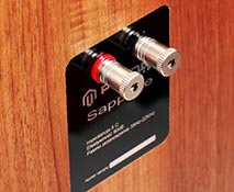 As I said, the speakers are a three-way, free-standing rear-vented design, with Polish drivers from STX. The speakers are really gorgeous and it is evident that the woofer is housed in a large chamber. The front is black lacquered and has chamfered edges that bring to mind Avalon speakers. The front baffle is quite thick, but these are still not very heavy speakers. They look very nice. Even the PVC finish is pretty cool as you need to get close to see that it is not a natural veneer. Anyway, for a small additional cost you can get the latter and to my eyes it is worth it! Then we have the specs on the Sapphire speakers: