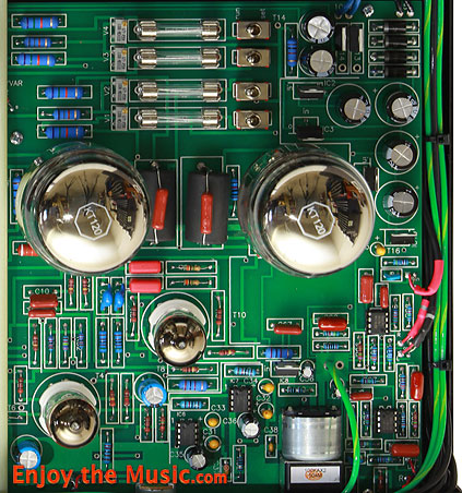 Rogue Audio's Cronus Magnum II features improvements over the original, and might I add award-winning, design. There are upgraded binding posts, upgraded small signal tubes and a few tweaks here and there. Tube sockets are gold plated to ensure a long-lasting, and reliable, electrical connection. Ultra-high tolerance components throughout are mounted to two-ounce copper circuit boards. Switches are silver plated, and as we know silver is perhaps the very best metal for signal connection. Everything looks very neat and tidy plus Rogue Audio has over-designed things to ensure long-lasting operation and reliability. As I said earlier, the Cronus Magnum II operated perfectly during the entire duration of this review. The outer chassis is highly resistant to scratches and corrosion. Available in silver or black, the machined aluminum faceplate is anodized to protect its appearance. The main chassis and transformer bits are flat black. Signal tubes such as the two 12AX7 and three 12AU7 are by JJ Electronic, while the four hefty KT120 output tubes are by Tung-Sol. You get a generous three year warranty on electronics and six months on vacuum tubes. On the rear of the unit are four stereo inputs via gold-plated RCA jacks. Loudspeaker binding posts are very hefty and gold plated as well. The MM phono stage has a 44dB gain plus there is a 1 Watt headphone amplifier too! There's a preamplifier output for use with bi-amplification, adding a powered subwoofer, home theater, etc. The power cord is an industry standard detachable IEC type. So for $2495 you have everything you need within the Rogue Audio Cronus Magnum II stereo integrated amplifier, just add source plus speakers / headphones and you're all set.