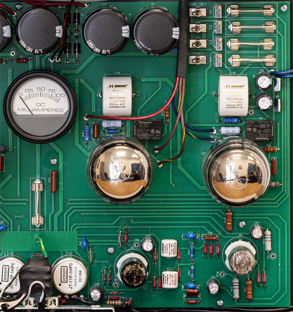 Set-Up I used the supplied AC power cord. Speaker cabling danced between Analysis Plus and Cord Company sets. The amp then was left on for one hour, and then the power tube bias was performed. Oh, yes, first had to remove the amp cover to get into the guts of the amp. I left the cover off for the entire review process. Too difficult to put the cover back on once the amp is planted. It was cool to see the tubes glow anyway. Part of the magic show. Also, good access to re-bias when needed. Nice big meters made it easy to see the results. There is a handy biasing tool mounted to the chassis that makes the process easy to accomplish. The amp was left on for a long while to burn in and stabilize.