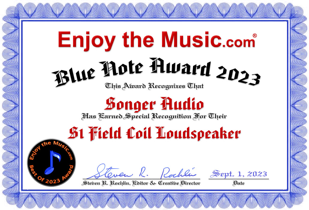 I am incredibly happy to have met Ken Songer at the Capital Audio Fest and had this opportunity to get to know him and his visionary S1 loudspeaker. They are a revelation and vital portrayal of the musical landscapes and performances on recordings. If it is a small ensemble performing, they can allow a listener to feel the musicians are in the room with you. If it is a larger work like an Orchestra or Big Band, they can make a person feel they are attending a concert and listening from out in the hall. As a thoughtful comparison to the typical ideas we have about speaker designs, I found the Songer Audio S1 point-source floorstanding speakers to have the transparency of electrostatic and planer panels, the rapid immediacy and jump factor with a room-filling projection of horns, the point source imagery of compact monitors, and the quality bass fullness of speakers with a conventional large woofer. This is quite a remarkable achievement for a single full-range driver dynamic speaker. There are many speaker choices available at various price ranges and acquisitions that need to be considered within the context of having a gorgeous music system. I think anyone will be able to appreciate the beautiful elegance of the majestic breadth and sweep of the music heard by the Songer loudspeakers. Songer Audo S1 point-source field coil speakers have a natural artisan wood construction and a driver with a polished bejeweled look. I appreciated the full range of these speakers' refinements and artistry. Just as there are many types of music to hear and enjoy, there are many choices of speakers to recognize. I am fortunate and grateful for having the Songers take up a review period residency in my home. This has been a truly magnificent experience and they have my highest recommendation.